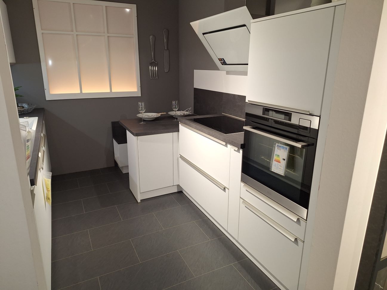 Die Ausstellungsküche wird inklusive Geräten verkauft.